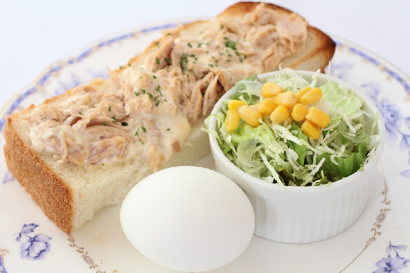 ・ツナマヨトースト・ボイルドエッグ・ミニサラダ