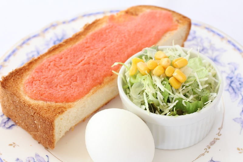 ・明太子トースト・ボイルドエッグ・ミニサラダ